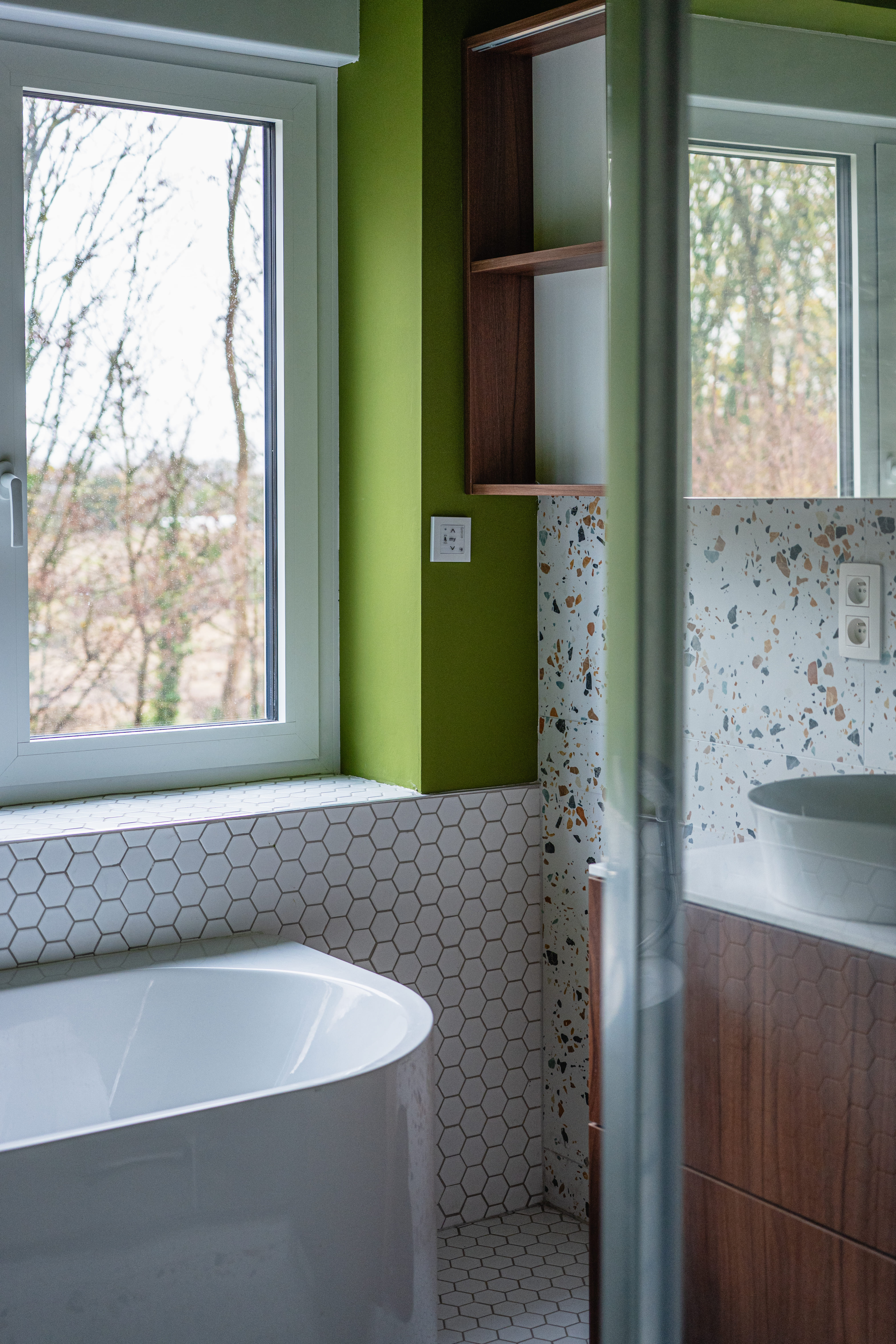 Quoi qu’il en soit, après un premier refus de permis, nous avons fini par trouver un compromis pour rénover cette habitation de manière contemporaine sans dénaturer l’ensemble. Le couple qui vit dans cette maison modeste souhaite une rénovation véritablement écoresponsable, sans prévoir d’extension, et y consacre les moyens et la patience nécessaires.
