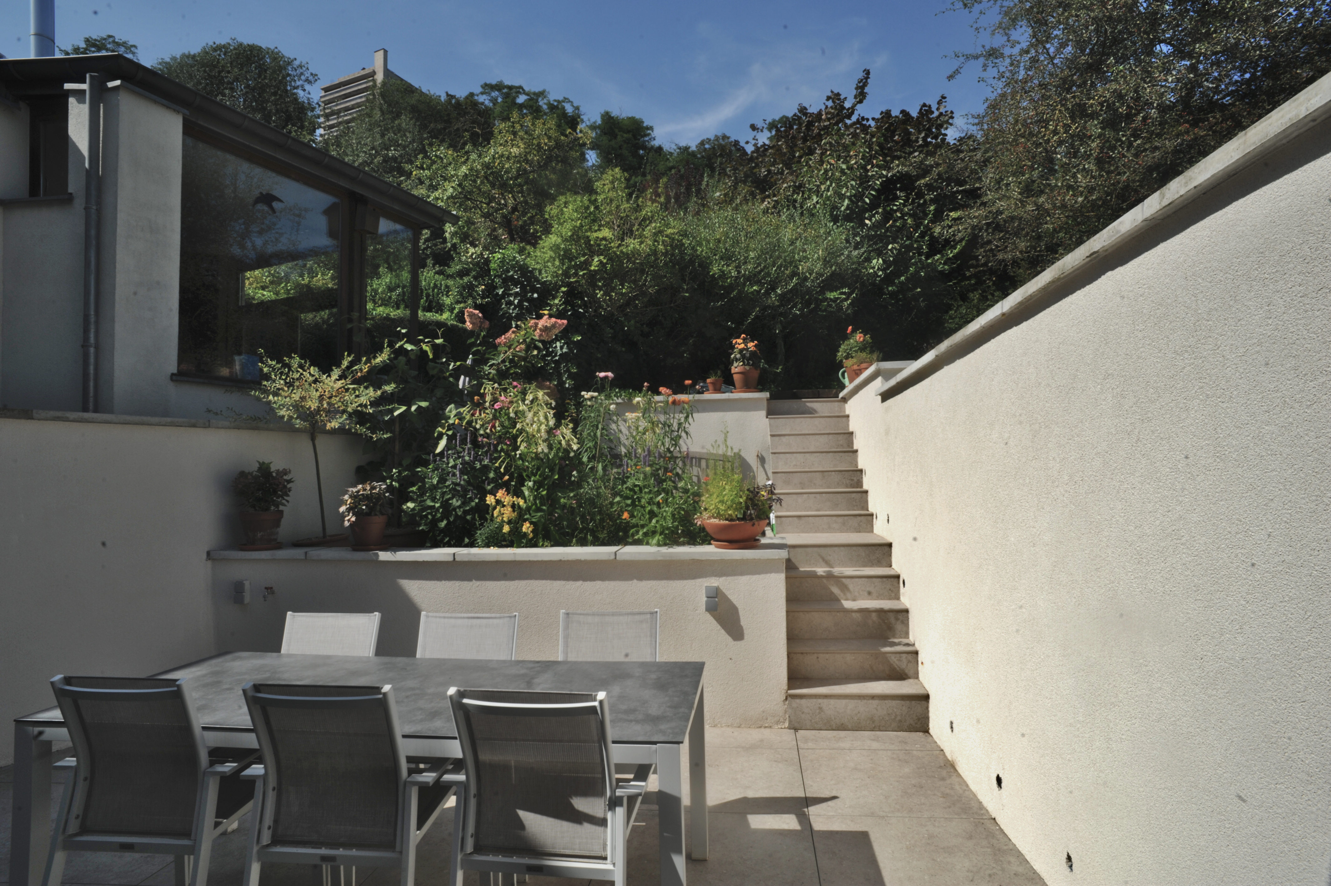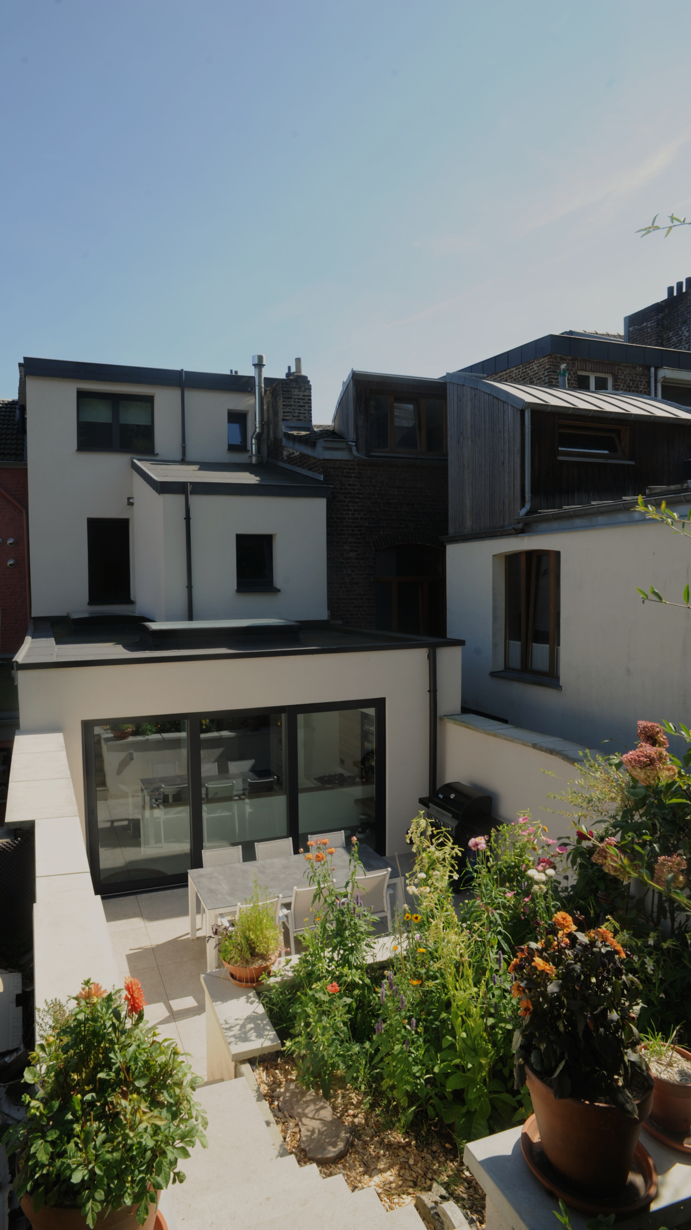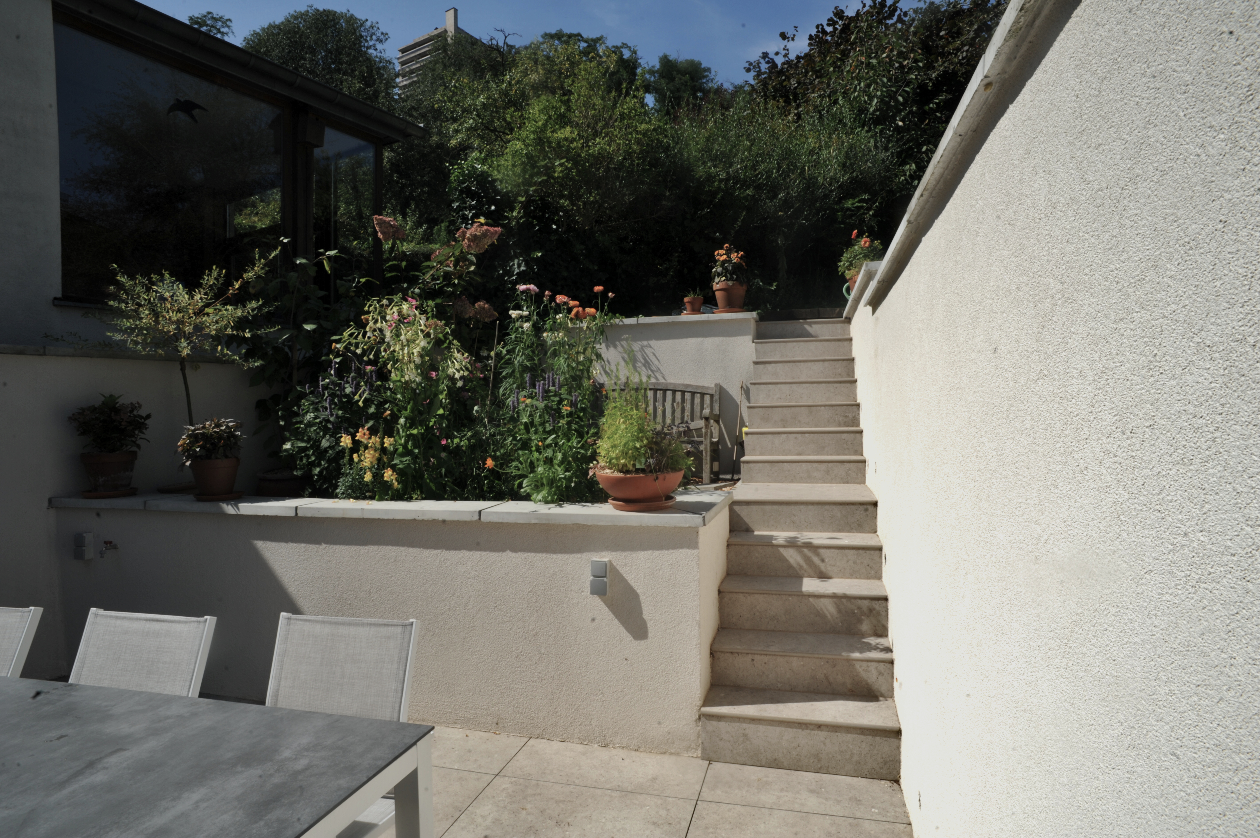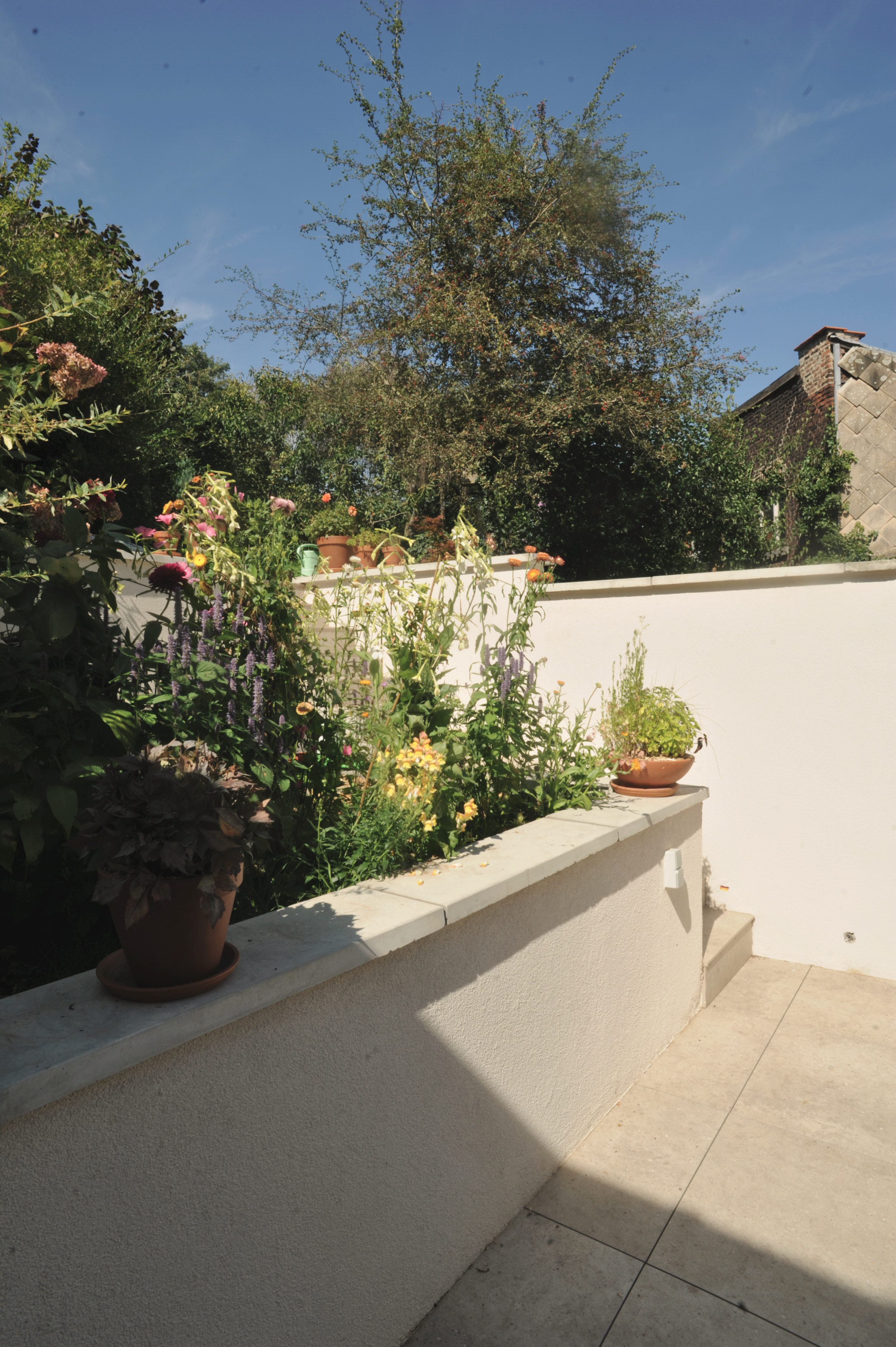 Une isolation uniforme couvrira les volumes existants et projetés, ce qui augmentera l’efficacité énergétique du bâtiment. Par ailleurs, le projet intégrera une rehausse partielle du mur mitoyen du côté de la parcelle voisine. Elle permettra ainsi de préserver l’intimité de chacun, notamment après la suppression de la haie existante, tout en respectant le contexte urbain.