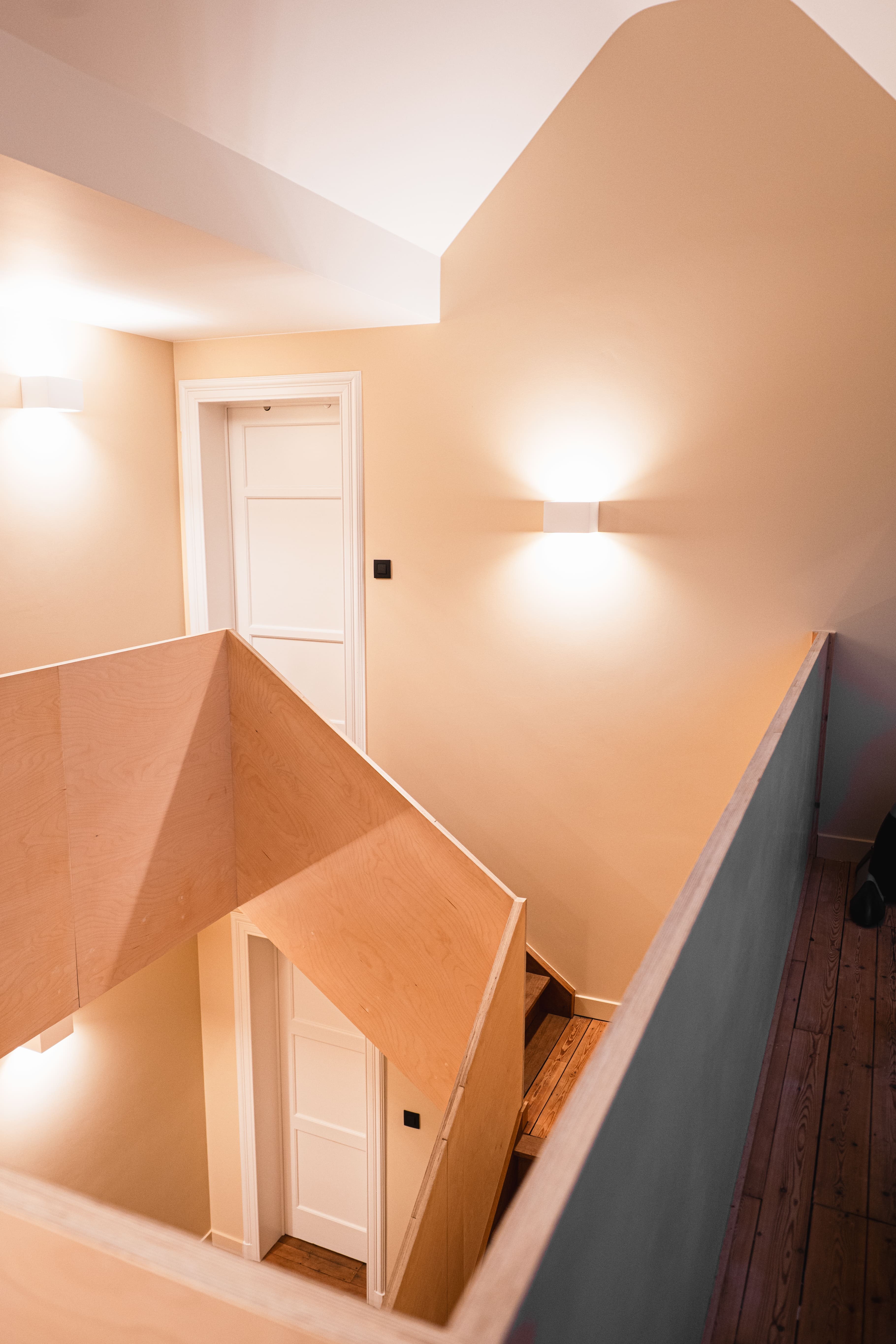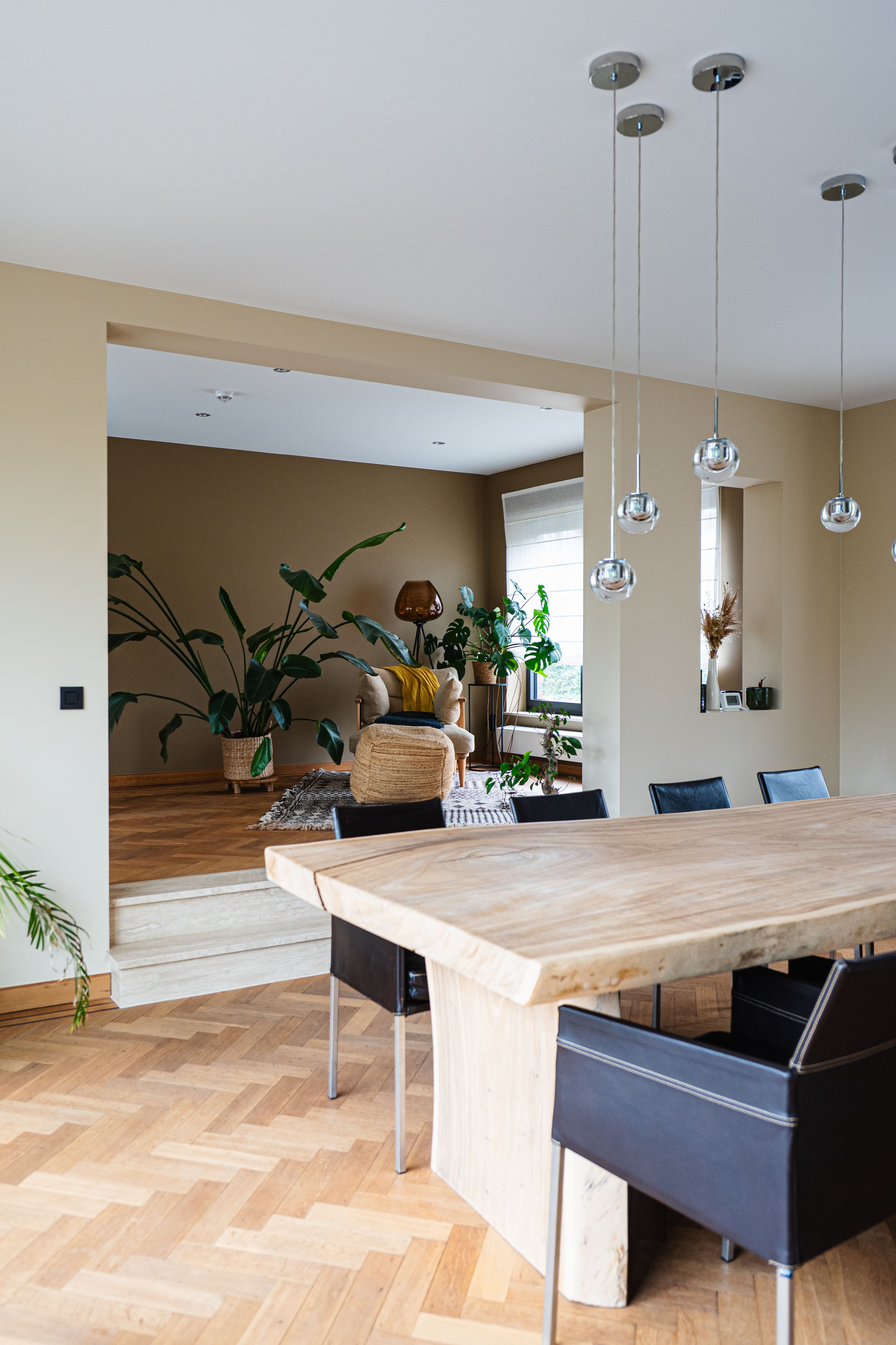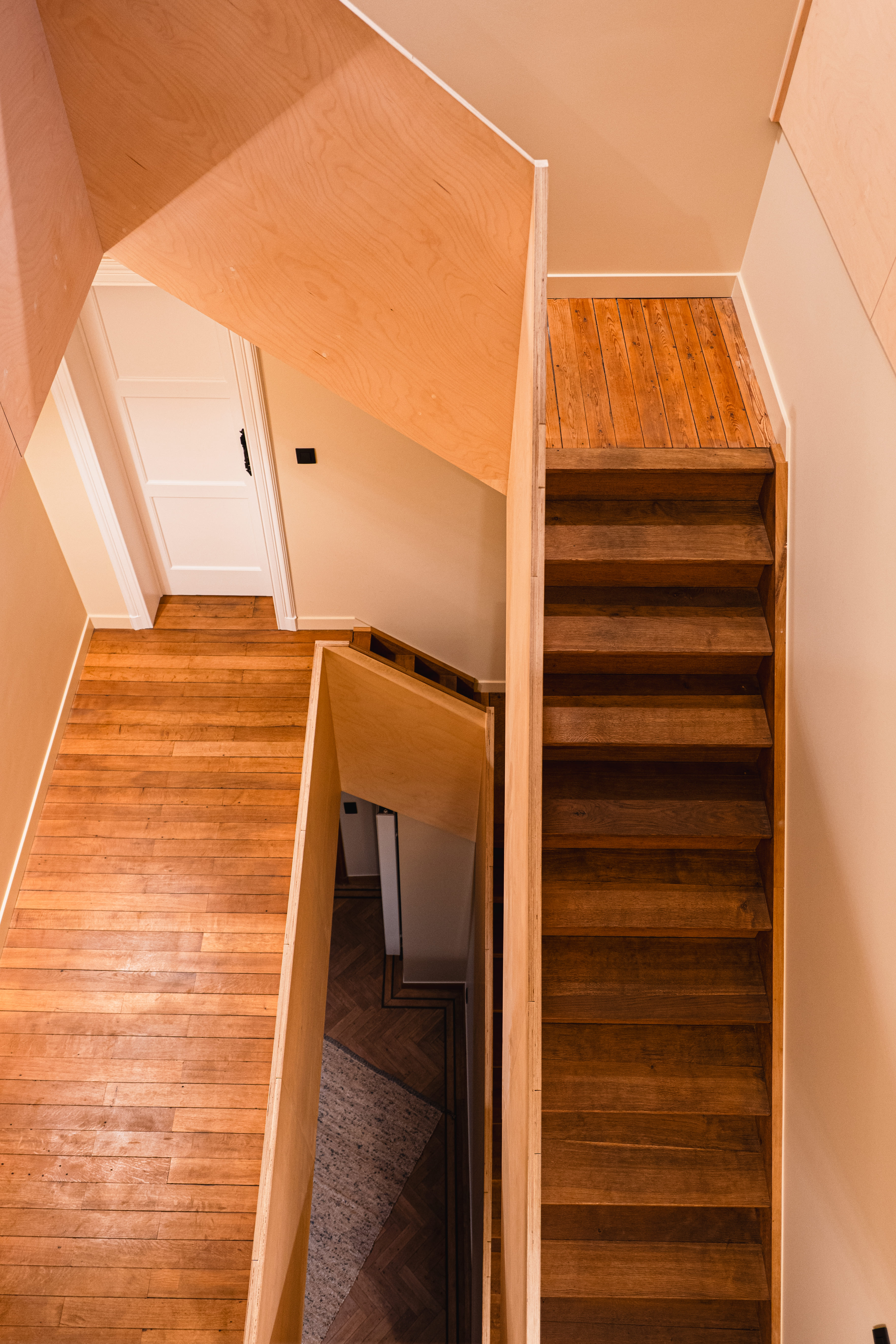 La rénovation intérieure concerne essentiellement le rez-de-chaussée. Les transformations permettront de répondre aux habitudes de vie actuelles. En effet, l’ouverture de larges baies intérieures et extérieures agrandira les espaces et créera une connexion visuelle avec l’extérieur. La stabilité des ouvrages sera étudiée avec notre ingénieur en construction. Toutes les installations techniques et les parachèvements seront rénovés. Les menuiseries intérieures d’époque seront rénovées, telles que parquets, portes et escaliers en chêne massif. Un nouveau garde-corps longeant la grande cage d’escalier centrale amènera une note contemporaine à cet intérieur totalement rénové.