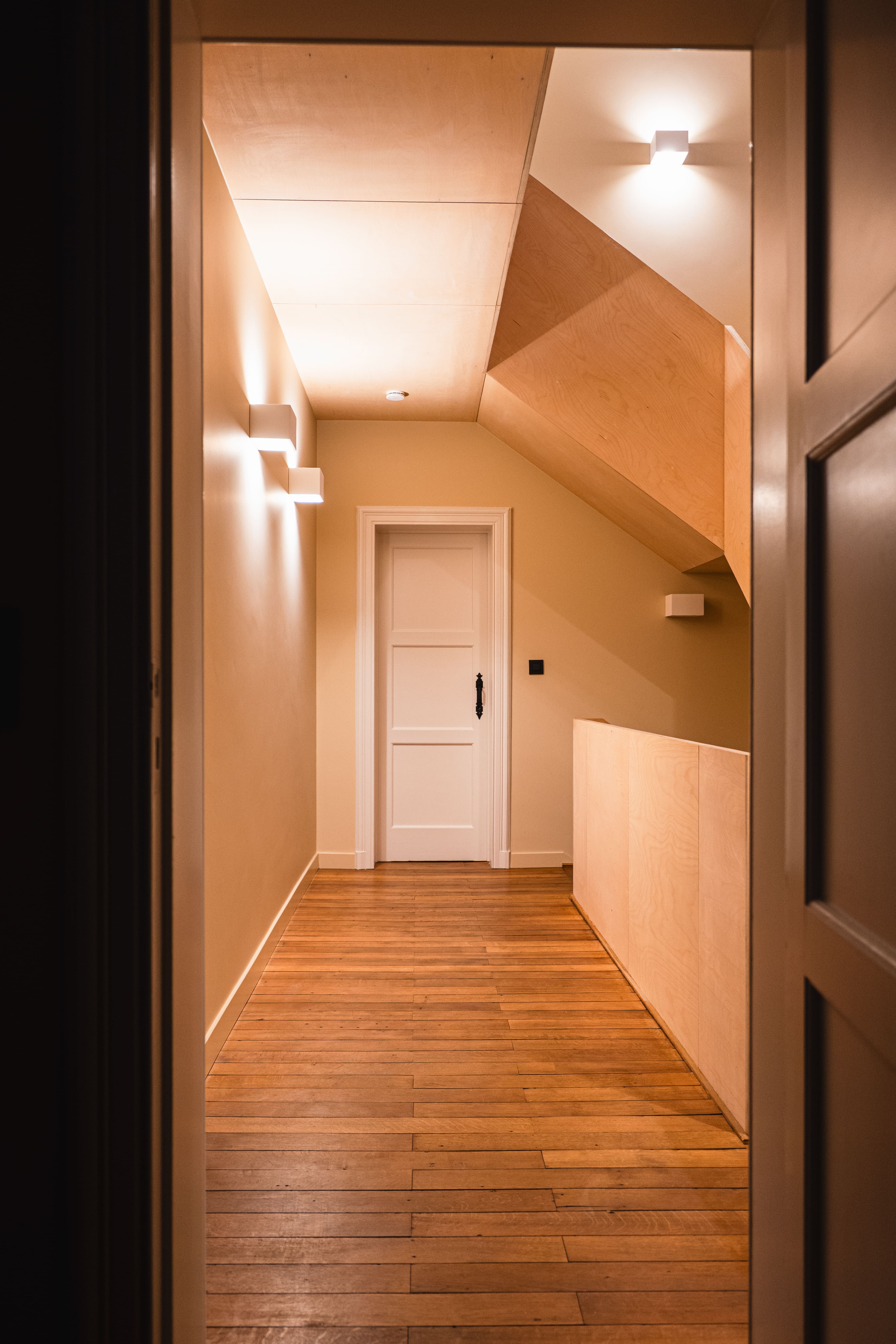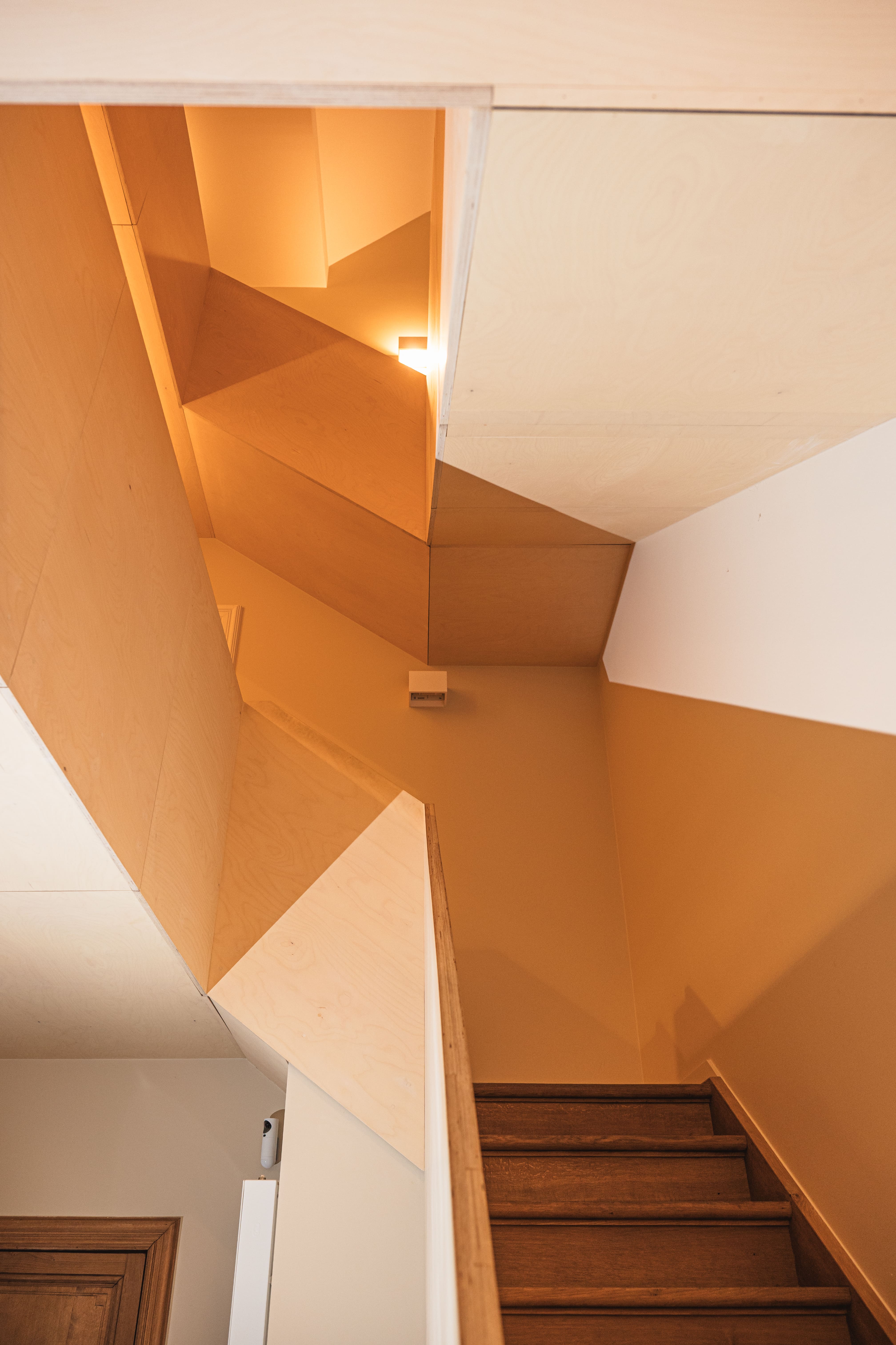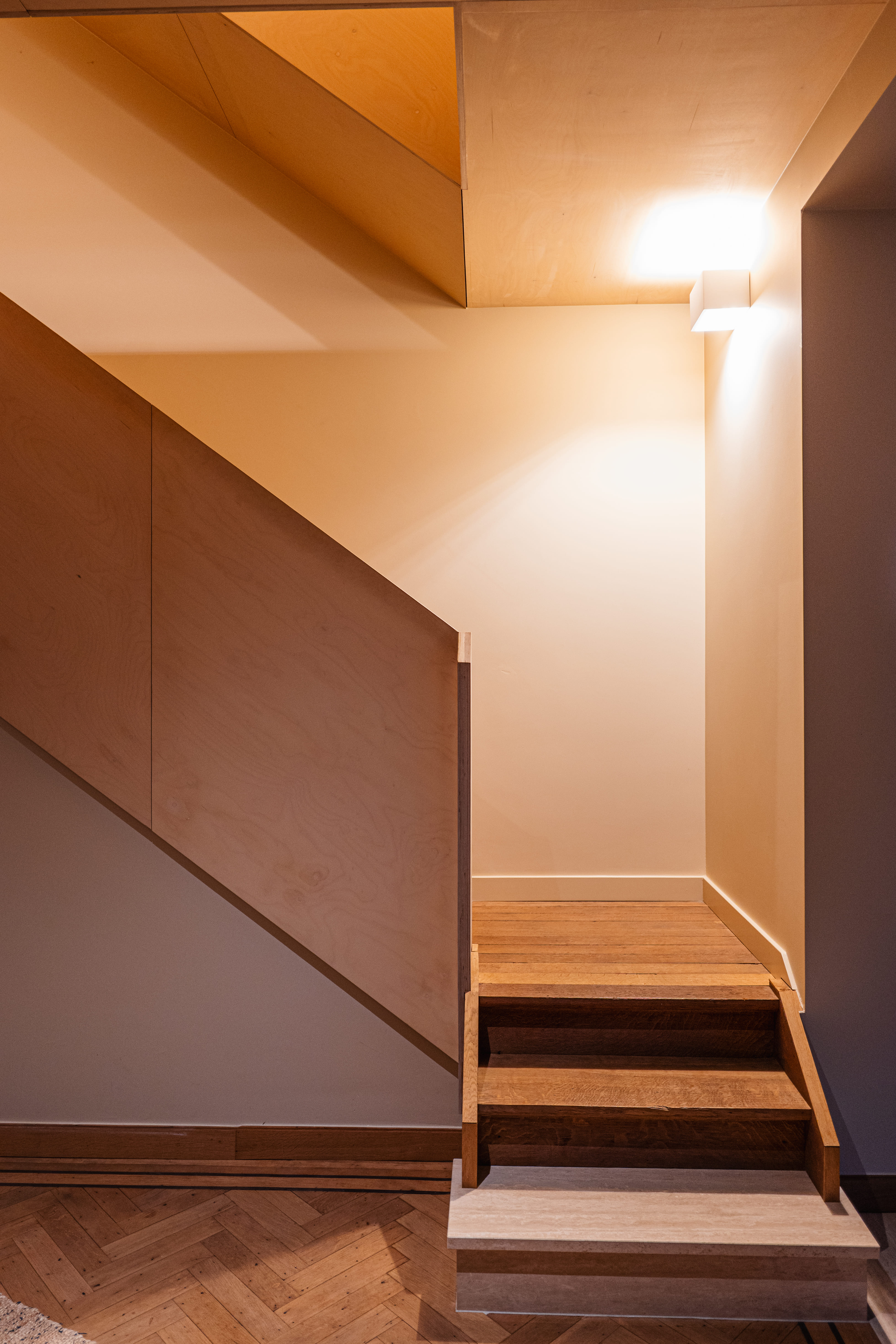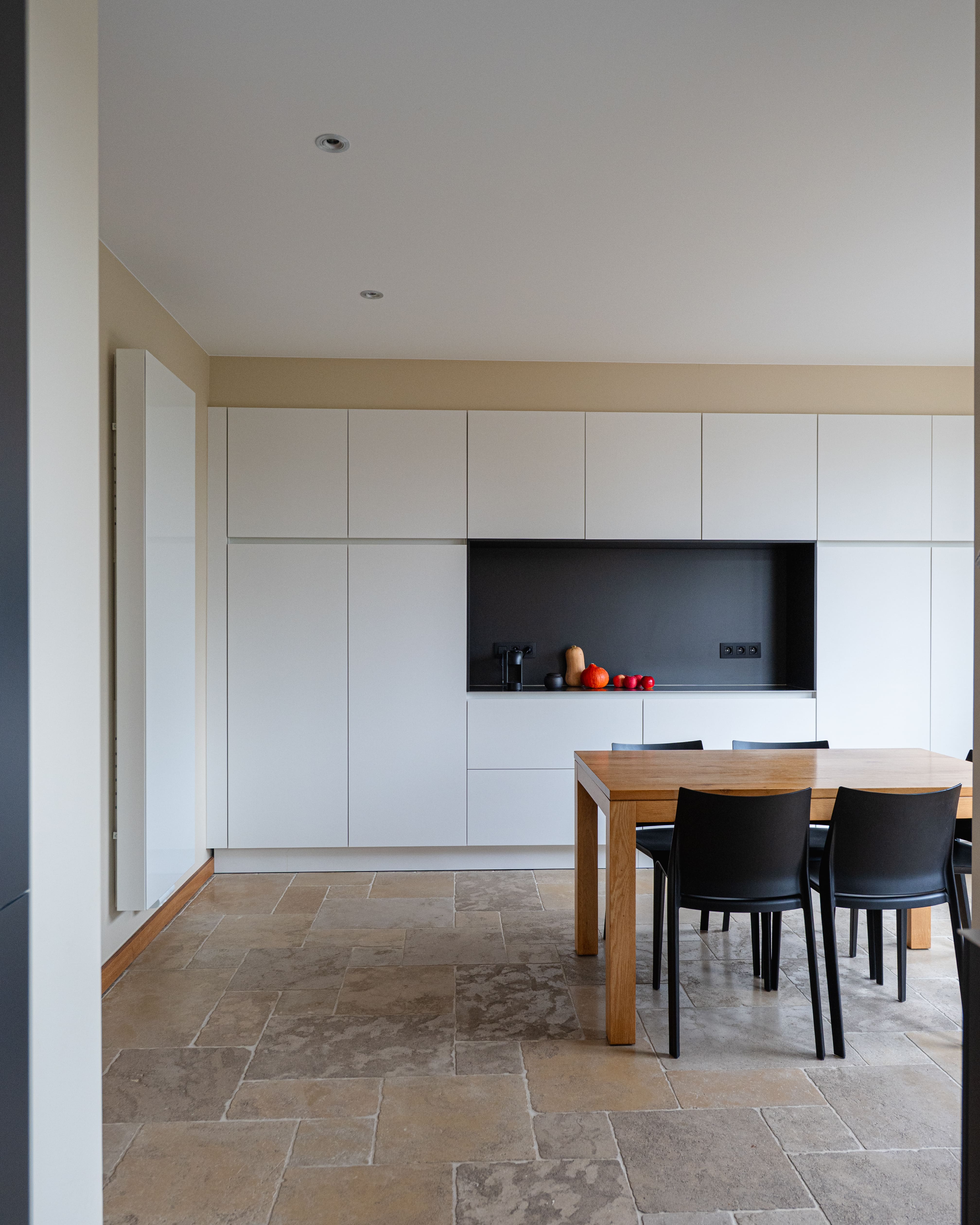 La rénovation intérieure concerne essentiellement le rez-de-chaussée. Les transformations permettront de répondre aux habitudes de vie actuelles. En effet, l’ouverture de larges baies intérieures et extérieures agrandira les espaces et créera une connexion visuelle avec l’extérieur. La stabilité des ouvrages sera étudiée avec notre ingénieur en construction. Toutes les installations techniques et les parachèvements seront rénovés. Les menuiseries intérieures d’époque seront rénovées, telles que parquets, portes et escaliers en chêne massif. Un nouveau garde-corps longeant la grande cage d’escalier centrale amènera une note contemporaine à cet intérieur totalement rénové.